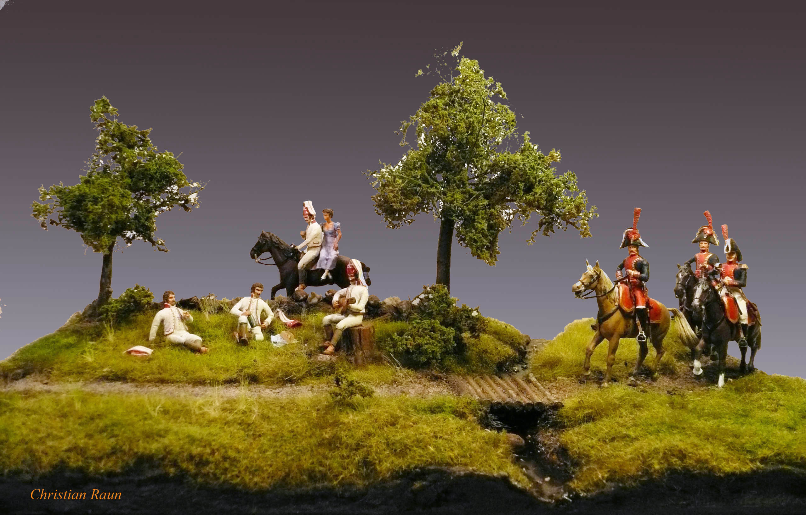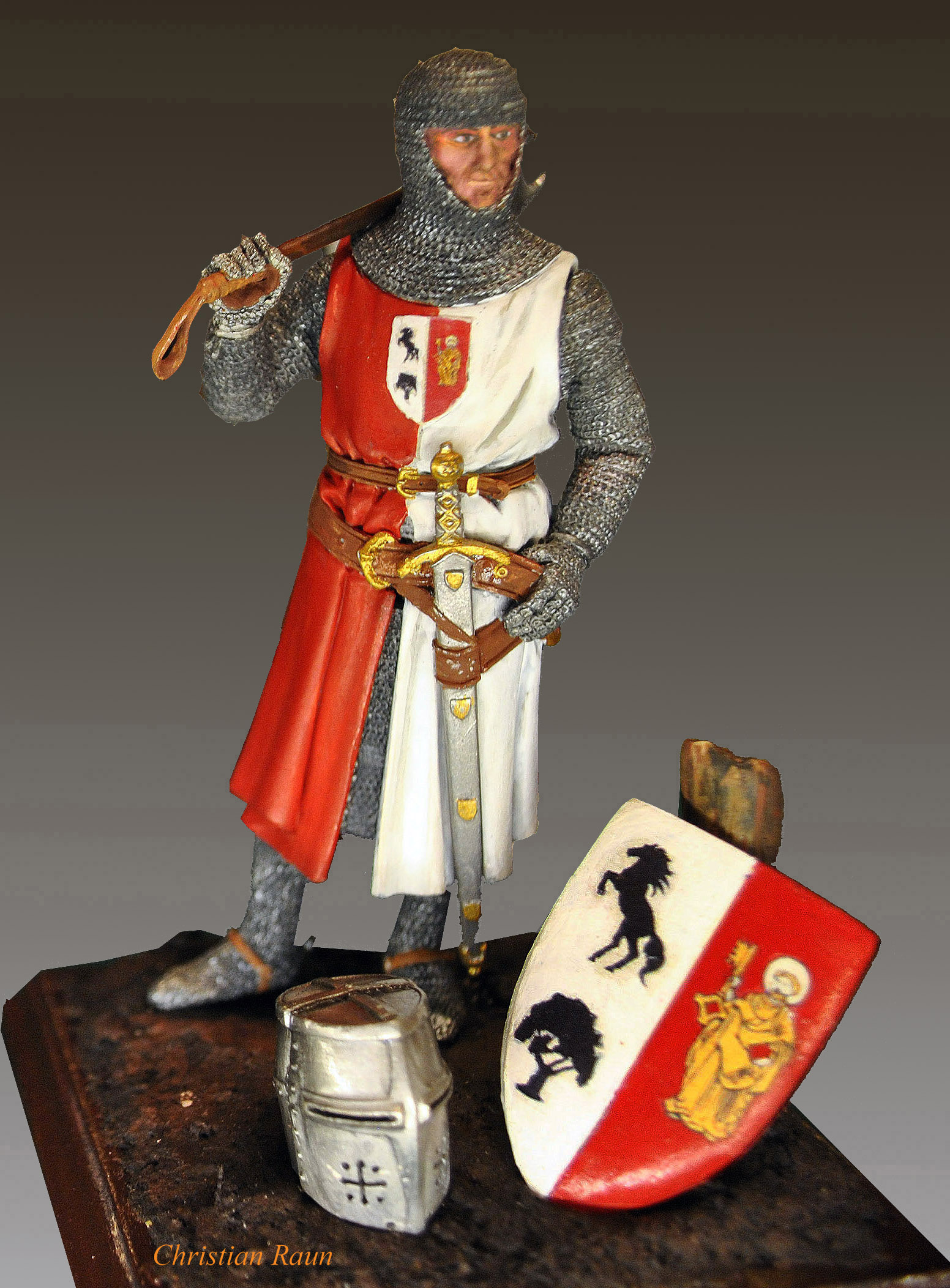 Christian Raun arbejder udelukkende i 54 mm figurer. Han modellerer og støber selv sine figurer i tin eller resin. Interesseområderne er dansk og tysk militær fra 1900 til 1940 samt franske kolonitropper. Han udfører både enkeltfigurer og figurgrupper samt dioramaer, hvor en lille finurlig detalje kan bringe et smil frem hos dem som betragter dioramaet.